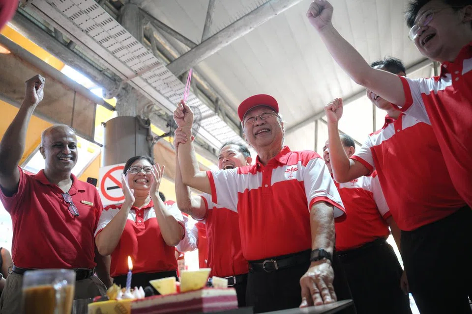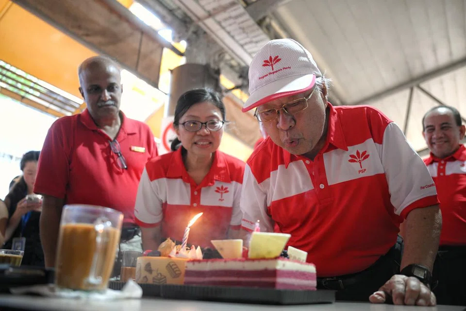 தெபான் கார்டன்ஸ் உணவு நிலையத்தில் நடைபெற்ற அக்கொண்டாட்டத்தில் சிங்கப்பூர் ஜனநாயகக் கட்சித் தலைவர் டாக்டர் பால் தம்பையா அவருக்கு கேக் தந்து வாழ்த்தினார்.