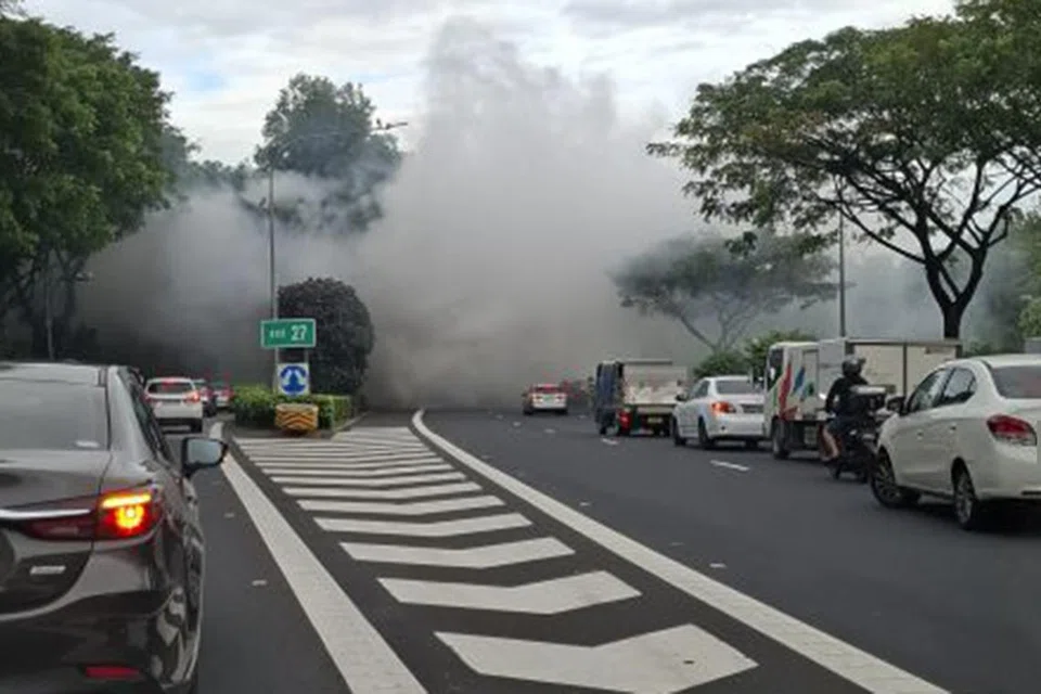 அப்படத்தில், லாரியில் இருந்து வெளியேறிய கரும்புகை தீவு விரைவுச்சாலை முழுவதும் படர்ந்திருப்பதைக் காண முடிந்தது. இச்சம்பவத்தில் யாரும் காயமடையவில்லை.