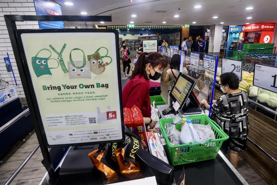 பெரிய பேரங்காடிகளில் பிளாஸ்டிக் பைகளுக்குக் கட்டாயமாகக் கட்டணம் விதிக்கும் நடைமுறை 2023 ஜூலை 3ஆம் தேதி நடப்புக்கு வந்தது.
