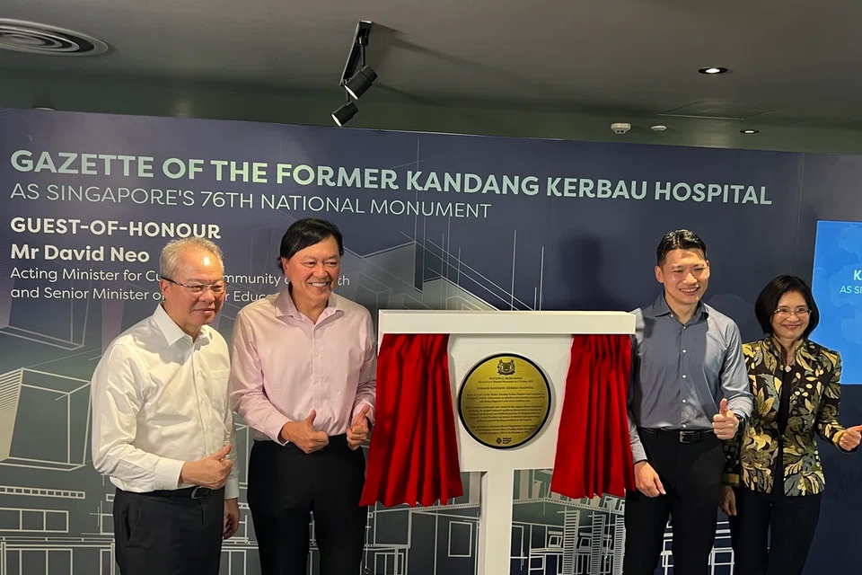 முன்னாள் கண்டாங் கெர்பாவ் (கேகே) மருத்துவமனை அதன் 101வது ஆண்டுநிறைவில் சிங்கப்பூரின் 76வது தேசிய நினைவுச் சின்னமாக அக்டோபர் 1ஆம் தேதியன்று அறிவிக்கப்பட்டுள்ளது.