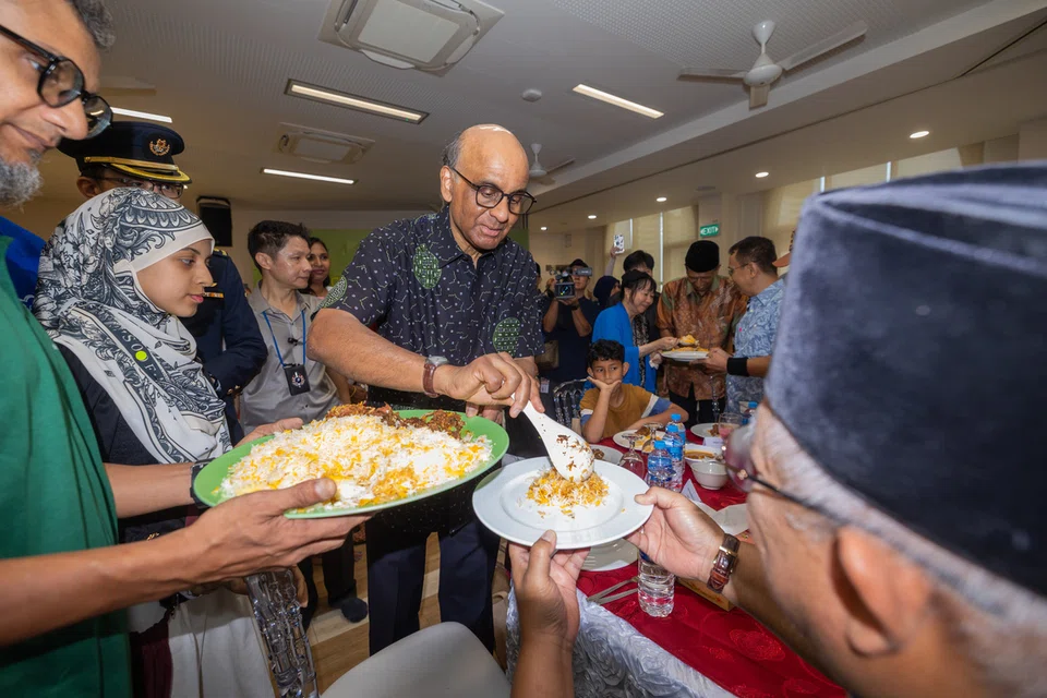 நிகழ்ச்சியின் இறுதி அங்கமாக, அதிபரும் திருமதி தர்மனும் மற்ற முக்கிய விருந்தினர்கள், பயனாளர்கள், நன்கொடையாளர்களுடன் இணைந்து காலித் பள்ளிவாசலில் மதிய உணவை அருந்தினர். விருந்தினர்களுக்கான உணவை அதிபரும் திருவாட்டி ஜேன் இத்தோகியும் பரிமாறினர்.