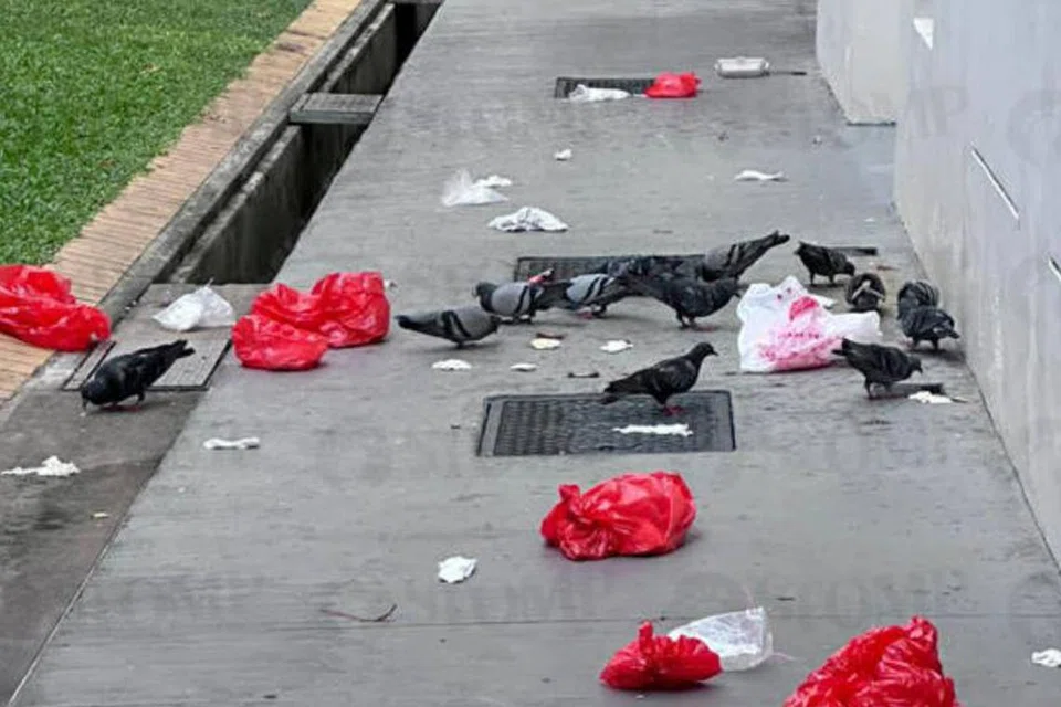 குப்பைகளை உணவென்று நினைத்துக் கிளறும் புறாக்களைக் காட்டும் படங்களையும் காணொளி ஒன்றையும் அந்தக் குடியிருப்பாளர் பகிர்ந்துகொண்டு, தனது அதிருப்தியைத் தெரிவித்துக் கொண்டார்.