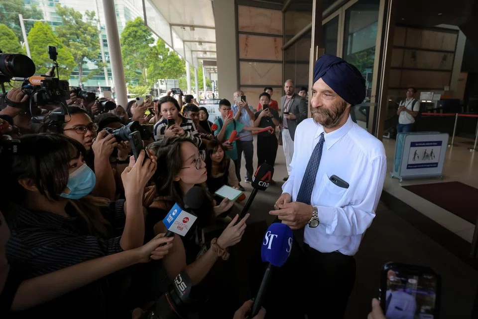 உயர் நீதிமன்றத்திலிருந்து வெளியாகும் ஈஸ்வரனின் வழக்கறிஞர் தவிந்தர் சிங். - படம்: ஸ்ட்ரெய்ட்ஸ் டைம்ஸ்