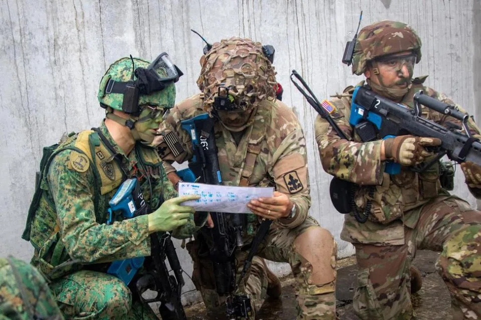 சிங்கப்பூர், அமெரிக்க ராணுவப் படையினர் நகர்ப்புறப் போர்ப் பயிற்சியில் ஈடுபட்டனர்.