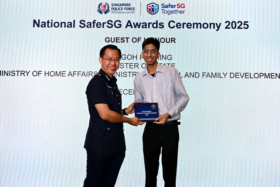 விருது விழாவில், ‘சுற்றுக்காவலில் குடிமக்கள்’ திட்டத்தின்கீழ் விருதுபெற்ற ஆக இளையவர் திரு பவேஷ் ஹரேஷ் தரானி, 25.