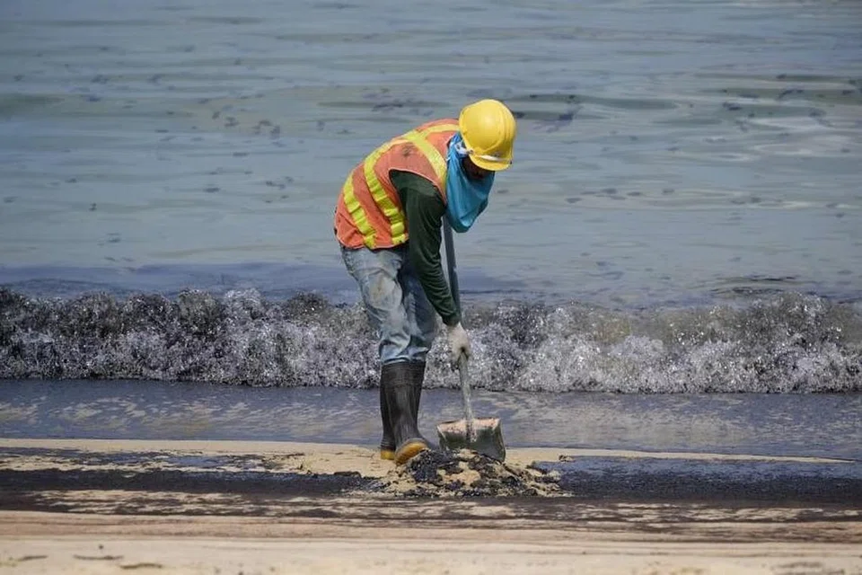பாசிர் பாஞ்சாங் முனையத்தில் சேதமடைந்த சரக்குக் கப்பலிலிருந்து கசிந்த எண்ணெய், சனிக்கிழமை (ஜூன் 15) ஈஸ்ட் கோஸ்ட் பூங்கா, லேப்ரடார் இயற்கை வனம், கெப்பல் பே, தென் தீவுகள், செந்தோசா ஆகிய கடலோரப் பகுதிகளுக்குப் பரவியது.