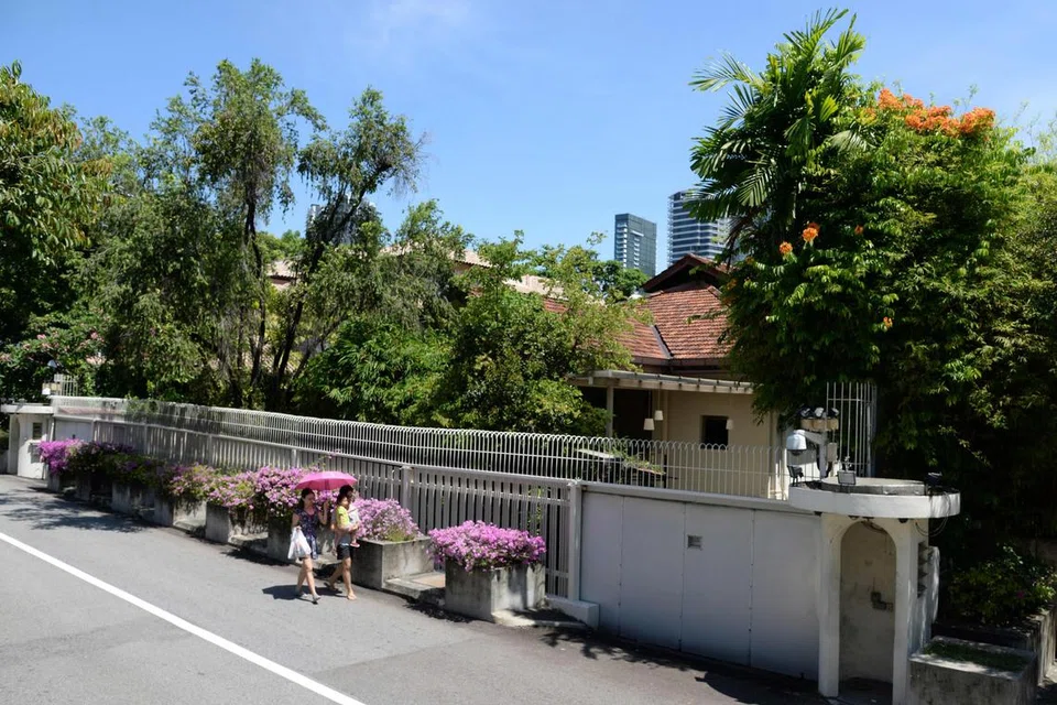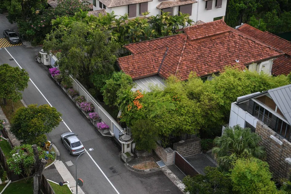 2017 ஜூன் 14ஆம் தேதி எடுக்கப்பட்ட படத்தில், எண் 38 ஆக்ஸ்லி சாலையில் அமைந்துள்ள சிங்கப்பூரின் முதல் பிரதமர் லீ குவான் யூவின் வீடு - கோப்புப் படம்: ஸ்ட்ரெய்ட்ஸ் டைம்ஸ்