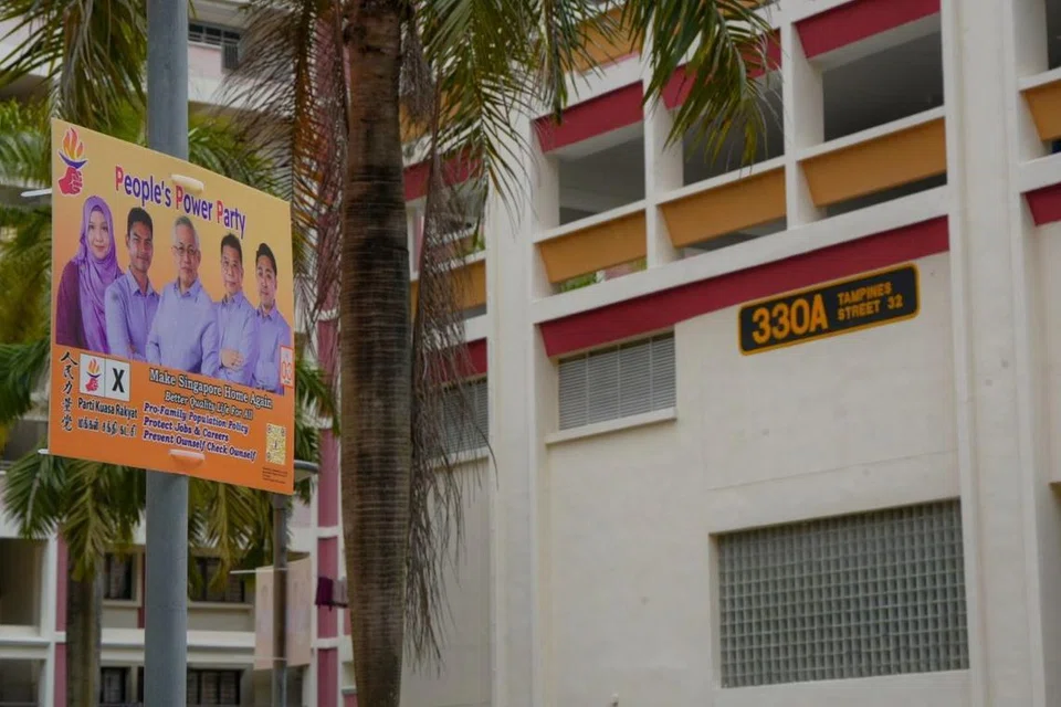 தெம்பனிஸ் ஸ்திரீட் 32ல் உள்ள புளோக் 330ஏ, புளோக் 307ஏ ஆகிய இடங்களில் அந்தப் பதாகைகள் தொங்கவிடப்பட்டிருந்தன. அவை இரண்டும், தெம்பனிஸ் சங்காட் தனித்தொகுதியில் உள்ள பகுதிகளாகும்.