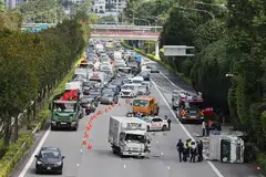 மோட்டார் சைக்கிளோட்டி திரு கோவன் டானும் குமாரி லிம்மும் தூக்கி எறியப்பட்டனர்.