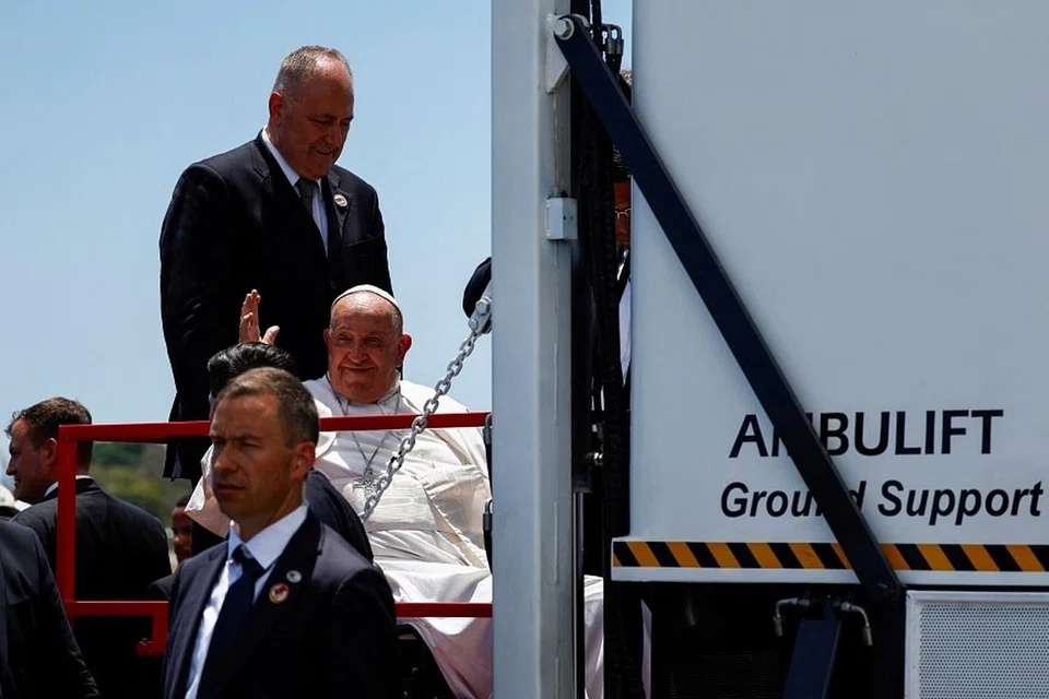 சிங்கப்பூர் வந்துள்ள போப் ஃபிரான்சிசை கலாசார, சமூக, இளையர் துறை அமைச்சர் எட்வின் டோங், அவரது மனைவி, சிங்கப்பூரிலேயே தங்கிப் பணியாற்றும் வத்திகனுக்கான சிங்கப்பூர்த் தூதர் ஜேனட் ஆங் ஆகியோர் வரவேற்றனர்.