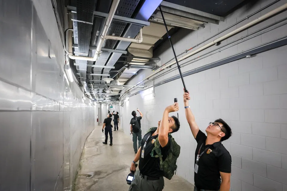 காவல்துறை பாதுகாப்புத் தளபத்தியம், சிங்கப்பூர் ஆயுதப் படையின் ரசாயனம், உயிரியல், கதீர்வீச்சு மற்றும் வெடிபொருள் தற்காப்புக் குழு (CBRE) ஆகியவற்றைச் சேர்ந்த குறைந்தது 90 அதிகாரிகள் சோதனை நடவடிக்கைகளில் மும்முரமாக ஈடுபட்டனர்.