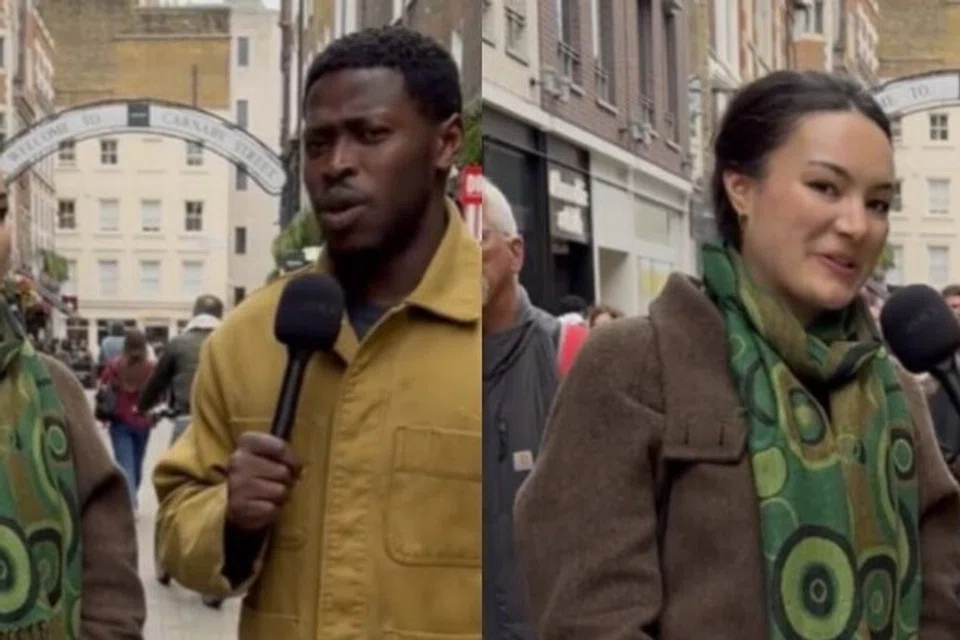 லண்டனின் கார்னபி ஸ்தீரிட்டில் ஆடவர் ஒருவர் சிங்கப்பூர்ப் பற்றி கேட்கும் கேள்விகளுக்கு அந்தப் பெண் துல்லியமாகப் பதிலளித்தார்.