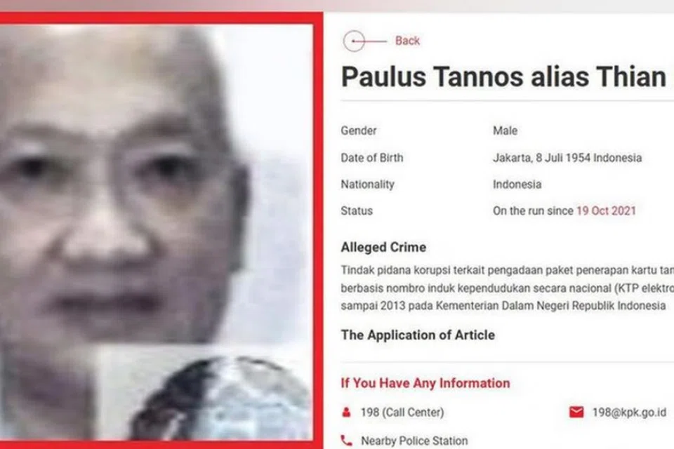 இந்தோனீசியாவில் ஊழல் குற்றச்சாட்டு காரணமாக பாலஸ் டன்னோஸ் கடந்த ஜனவரி 17ஆம் தேதி சிங்கப்பூரில் லஞ்ச ஊழல் புலனாய்வுப் பிரிவால் கைது செய்யப்பட்டார். இதற்கு முன்பு 2021 அக்டோபர் 19ஆம் தேதியிலிருந்து அவர் இந்தோனீசியாவின் தப்பியோடியவர் பட்டிலில் இடம்பெற்று இருந்தார்.