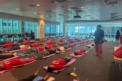 சிங்கப்பூரின் 60ஆவது ஆண்டு விழாவை ஒட்டி, அனைத்துலக யோகா தினத்தை முன்னிட்டு, ஜூன் 21ஆம் தேதி அன்று தோ பாயோவிலிருக்கும் ஓர் கூடைப்பந்து மைதானம் இருக்கைகள் நிறைந்த யோகா கூடமாக உருமாறியது.