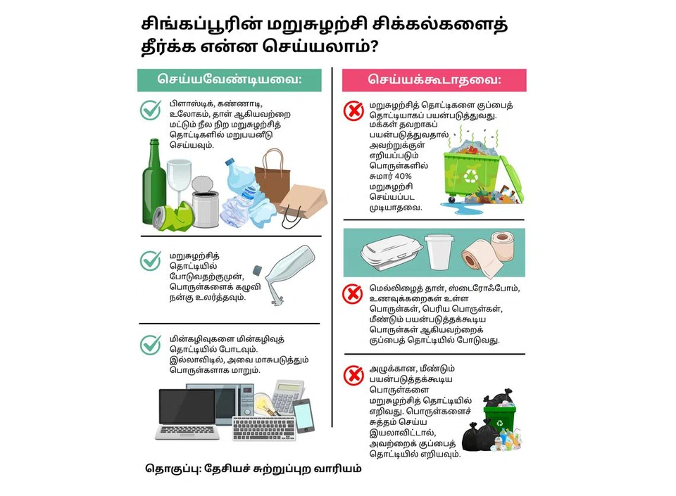 சிங்கப்பூர் வீடுகளில் மறுசுழற்சி விகிதம் 2024ஆம் ஆண்டில் முன்னெப்போதும் இல்லாத அளவுக்கு 11 விழுக்காட்டுக்குக் குறைந்தது. முந்திய இரண்டு ஆண்டுகளில் (2023, 2022) இருந்த 12 விழுக்காட்டைக் காட்டிலும் அது குறைவு.