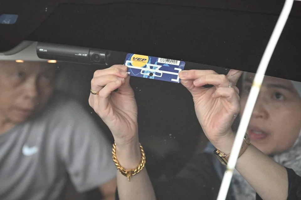 புதன்கிழமையன்று ஜோகூர் பாருவில் உள்ள டாங்கா பே பகுதியில் (ஜூன் 4) தமது வாகனத்துக்கான விஇபி ஒட்டுவில்லையைப் பொருத்திவிட்டதாக மகிழ்ச்சியுடன் கூறினார் 62 வயது திரு வெல்வினல் சான்.