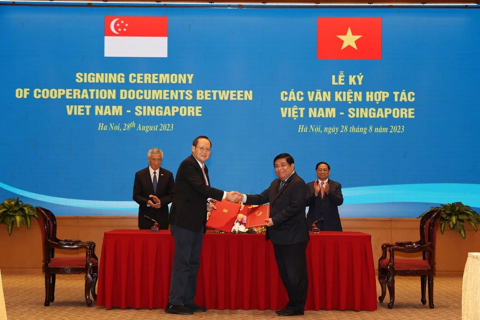 இணைப்புக் கட்டமைப்பு உடன்பாட்டை விரிவுபடுத்தும் கடிதங்களை இரண்டாம் வர்த்தக, தொழில் அமைச்சர் டான் சீ லெங்கும் வியட்னாமியத் திட்டமைப்பு, முதலீட்டு அமைச்சர் குயென் சீ ஜுங்கும் பரிமாற்றம் செய்து கொண்டனர்.