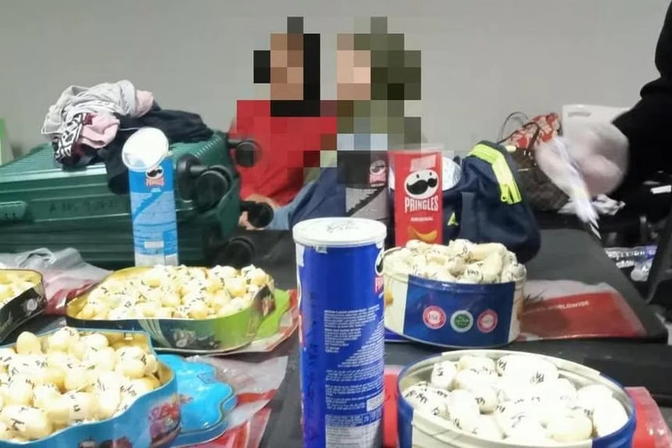 விமான நிலையத்தில் இருக்கும் போதைப்பொருள் தடுப்புப் பிரிவைச் சேர்ந்த அதிகாரிகள், அவர்களின் பயணப்பெட்டிகளைச் சோதனை செய்தபோது அதில் ‘கொக்கெய்ன் போதைப் பொருள்’ 341 உருண்டைகளாக உணவுப் பொட்டலங்களில் அடைக்கப்பட்டிருந்ததைக் கண்டுபிடித்தனர்.