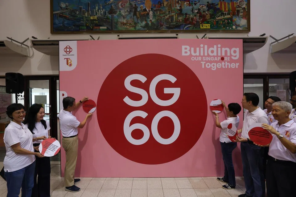 எஸ்ஜி60யை முன்னிட்டு நாட்டின் எதிர்காலத்துக்குப் பங்காற்ற மக்கள் தம் உறுதிமொழிகளைச் சுவரில் ஒட்டினர்.