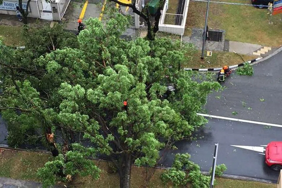சுவா சூ காங்கில் நேற்று பிற்பகலில் பெய்த மழையில் மரம் ஒன்று விழுந்ததில் இரண்டு பேர் தங்கள் காரில் கொஞ்ச நேரம் சிக்கிக்கொண்டனர். சுவா சூ காங் அவென்யூ 2ல் இருக்கும் 296வது புளோக்குக்கு எதிரே இந்தச் சம்பவம் நிகழ்ந்தது. சிங்கப்பூரில் ஞாயிற்றுக் கிழமை பிற்பகலில் மிதமான அல்லது கடும் மழை பெய்யக் கூடும் என்று தேசிய சுற்றுப்புற வாரியம் முன்னதாக எச்சரித்து இருந்தது. கீழே விழுந்த மரம் காரை முற்றிலும் மூடிவிட்டதை இங் சி யி என்ற பட்டப்படிப்பு மாணவர் ஒருவர் இணையத்தில் அனுப்பிய படம் காட்டியது. மரம் முழு தடத்தையும் அடைத்துவிட்டது. பேருந்து செல்ல முடியவில்லை என்று அந்த 23 வயது மாணவர் குறிப் பிட்டு இருந்தார்.