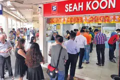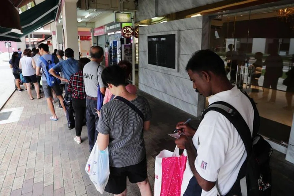 நேற்று சிங்கப்பூர் பூல்ஸ் கடைகளில் இரவு 9 மணிவரை நீண்ட வரிசையில் காத்திருந்து மக்கள் சீட்டுகளை வாங்கிச் சென்றனர். படம்: ஸ்ட்ரெய்ட்ஸ் டைம்ஸ் -