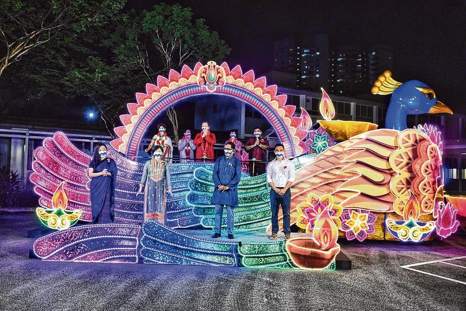 கோயில் கோபுரத்துடன் கூடிய அலங்கார விளக்குகள் சிராங்கூன் சாலை வீதிகளுக்கு ஒளியூட்டும் அற்புதக் காட்சி தீபாவளி நெருங்கிவிட்டதை குறிக்கின்றது.