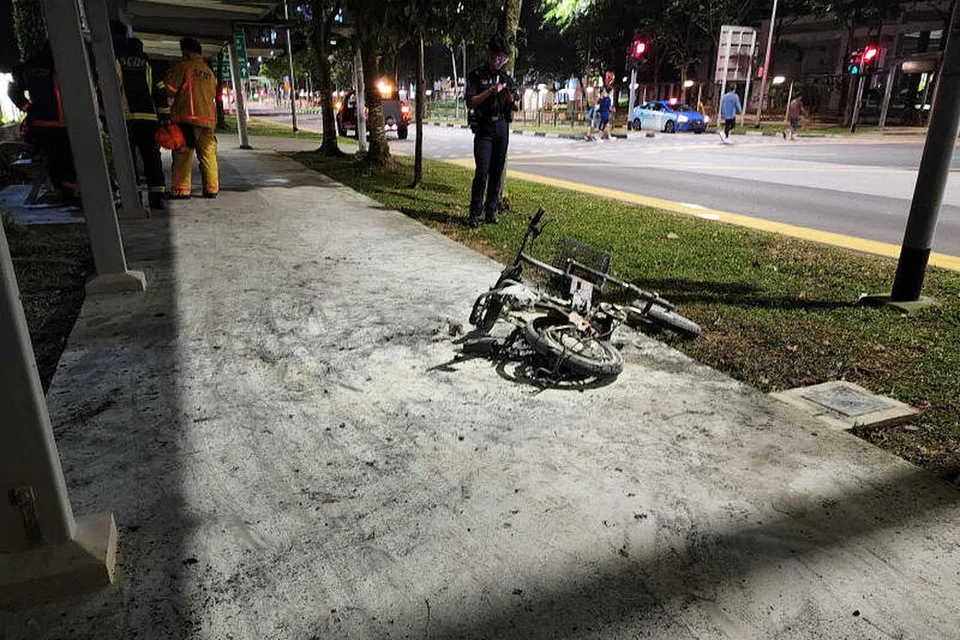 பொங்கோல் பிளேஸ் பகுதியில் மின்சைக்கிளால் சாலையோரத்தில் தீ மூண்டது.