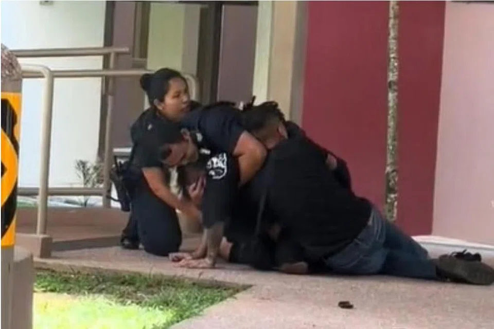 காணொளியில் சந்தேக நபரை அதிகாரிகள் மடக்கிப்பிடிப்பதும் பொதுமக்களில் ஒருவர் சந்தேக நபரைக் கைது செய்ய உதவியதும் பதிவாகியிருந்தது.
