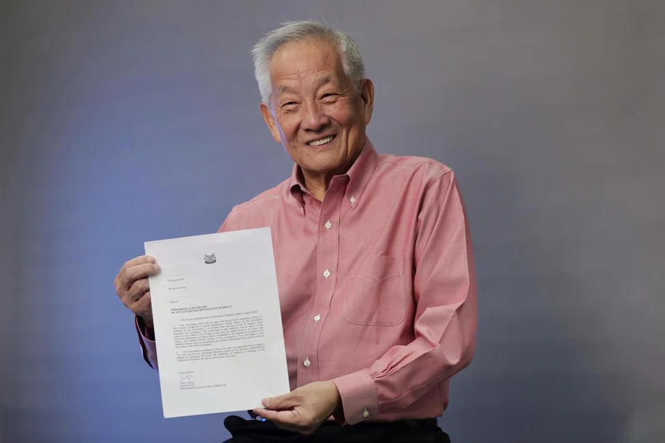 வரவிருக்கும் அதிபர் தேர்தலில் போட்டியிட தாம் தகுதிபெற்றதால் திரு இங் கோக் சோங், 75, நிம்மதி அடைந்துள்ளார்.