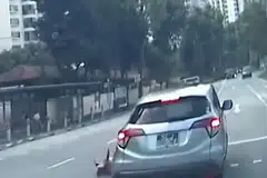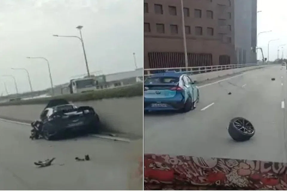 இணையத்தில் வலம் வந்த அரை நிமிடக் காணொளியில், காரின் சக்கரம் உள்ளிட்ட வாகனச் சிதைவுகள் சாலையின் நான்கு தடங்களில் சிதறிக் கிடந்தது தெரிந்தது.