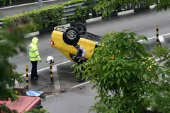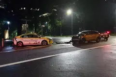 முன்னதாக, மற்றொரு விபத்து குறித்து சனிக்கிழமை காலை 9.10 மணியளவில் காவல்துறைக்குத் தகவல் வந்தது. டாக்சி-பந்தய கார் விபத்து நிகழ்ந்த இடத்திலிருந்து 5 கி.மீ. தூரத்தில் அந்த விபத்து நிகழ்ந்தது. ஈஸ்ட் கோஸ்ட் பார்க்வேயை நோக்கிச்செல்லும் ஷியர்ஸ் அவென்யூவில் சறுக்கி கார் ஒன்று விபத்துக்குள்ளானது.