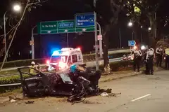 ராஃபிள்ஸ் மருத்துவமனைக்குக் கொண்டு செல்லப்பட்டபோது 55 வயது ஆண் கார் ஓட்டுநரும் 53 வயது பெண் பயணியும் சுயநினைவுடன் இருந்தனர். காவல்துறை விசாரணை தொடர்கிறது.