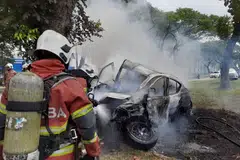 இதனிடையே, விரைந்து வந்த காவல்துறை அதிகாரிகளும் தீயணைப்புத் துறையினரும் தீயை அணைக்கப் போராடினர். என்றாலும் கரும் புகை கிளம்பி மேலே உள்ள வீடுகளுக்குப் பரவியது.