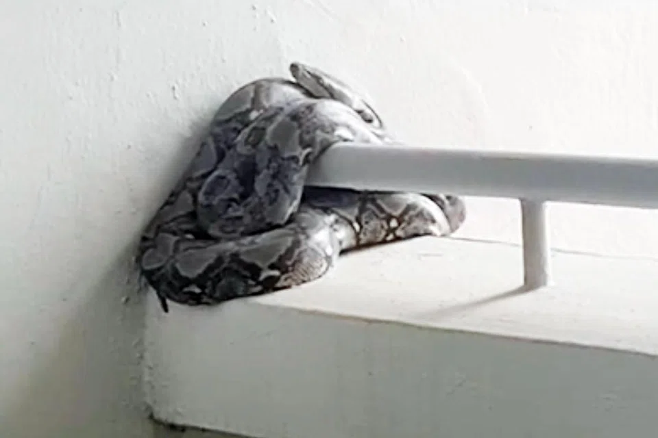 ஏறக்குறைய 3 மீட்டர் நீளமுடைய மலைப்பாம்பு, தெம்பனிஸ் புளோக்கில் வசிக்கும் குடியிருப்பாளர்களைப் பயமுறுத்தியது. அந்த புளோக்கின் மூன்றாம், நான்காம் தளத்திற்கு இடைப்பட்ட படிக்கட்டில் அந்த மலைப்பாம்பு அசைவின்றிக் காணப்பட்டதாக சீன நாளிதழான ஷின் மின் திங்கட்கிழமை தெரிவித்தது.