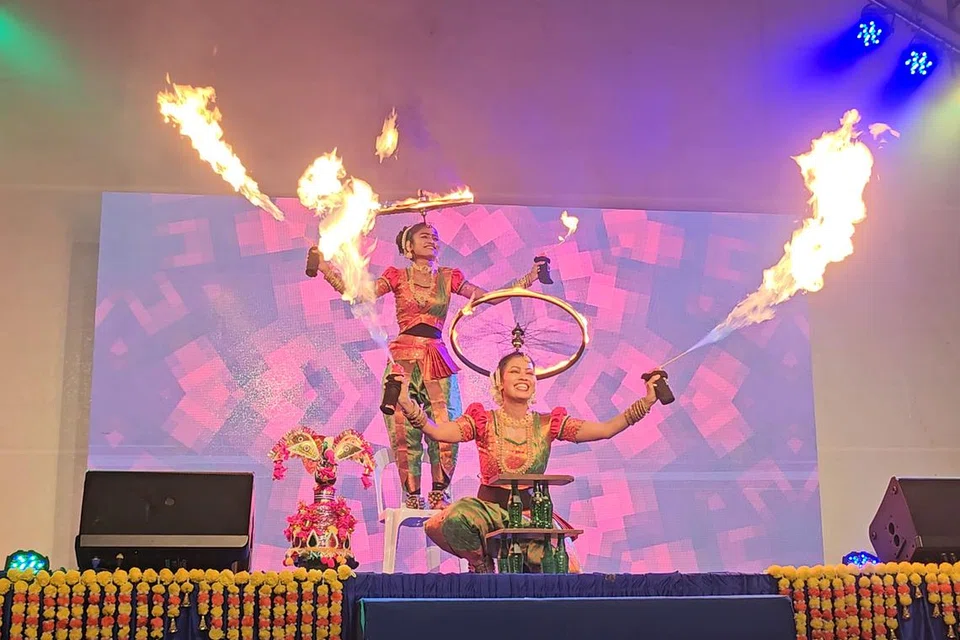 லிட்டில் இந்தியா வட்டாரத்தில் கிளைவ் ஸ்திரீட் வழியாகச் சென்றோர், வழக்கத்திற்கு மாறுபட்ட காட்சியாக, கரகாட்டம், பொய்க்கால் மாடு, மயிலாட்டம் ஆகியவற்றைக் கண்டனர்.
