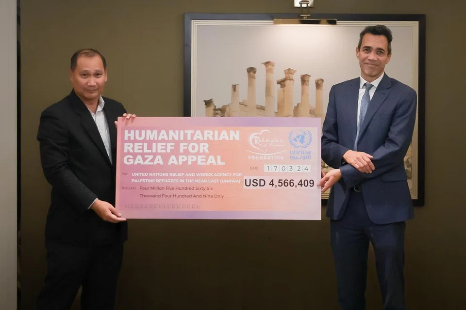 காஸா மக்களுக்கு உதவுவதற்காக சிங்கப்பூரின் ரஹ்மதான் லில் அலமின் அறக்கட்டளை (ஆர்எல்ஏஎஃப்) சென்ற ஆண்டு (2023) திரட்டிய அறநிதியின் ஒரு பகுதித் தொகை அது.