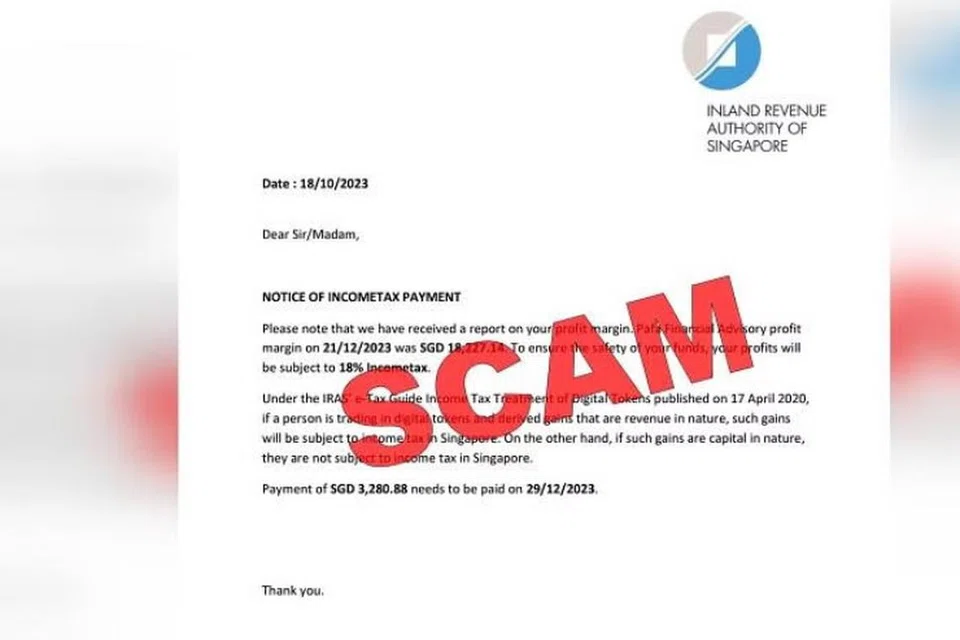 சிங்கப்பூர் உள்நாட்டு வருவாய் ஆணைய (ஐராஸ்) அதிகாரிகளைப் போல ஆள்மாறாட்டம் செய்து நடத்தப்பட்ட மோசடியில் குறைந்தபட்சம் 52 பேர் சிக்கி பணத்தை இழந்துள்ளனர்.