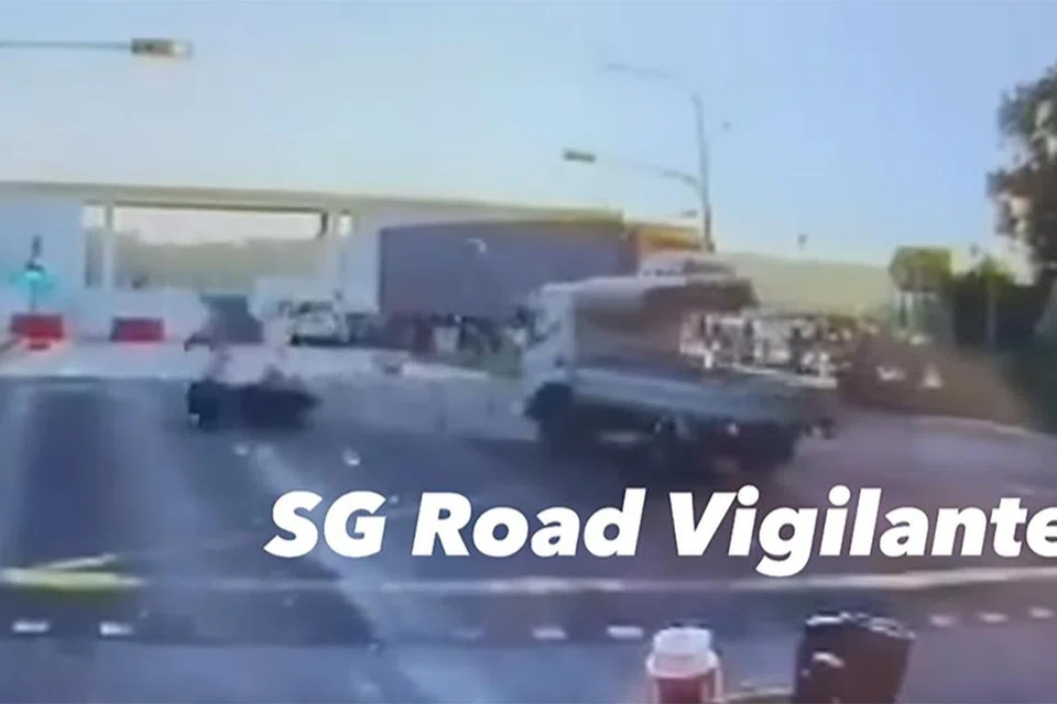 போக்குவரத்து சமிக்ஞை விளக்கு சிவப்பைக் காட்டியபோதும் லாரி ஓடியதை காணொளி காட்டியது. - படம்:  எஸ்ஜி ரோடு விஜிலன்டே ஃபேஸ்புக்