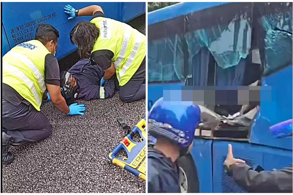 காரில் மோதாமல் தப்புவதற்காக, ஆடவர் ஒருவர் தனது மோட்டார் சைக்கிளிலிருந்து குதித்ததாகவும் ஆனால் அப்போது கடந்து சென்ற பேருந்தின் பக்கவாட்டில் அவர் மோதிக்கொண்டதாகவும் ஷின் மின் நாளேடு தெரிவித்தது.