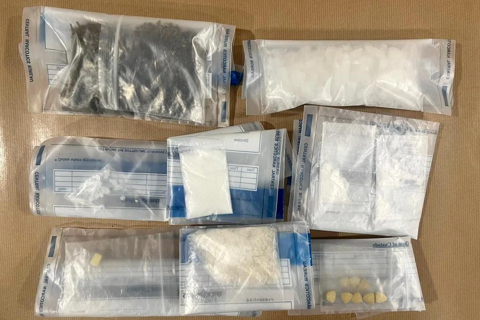 அவர்களிடமிருந்து கிட்டத்தட்ட 83 கிராம் ஐஸ், 48 கிராம் கஞ்சா, 12 கிராம் கெட்டமைன், ஒன்பது எக்ஸ்டசி மாத்திரைகள் முதலிய போதைப்பொருள்கள் பறிமுதல் செய்யப்பட்டன.