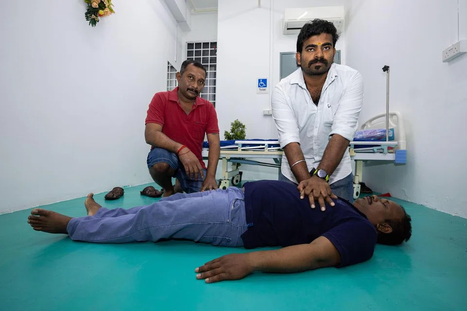 இதயத்தைத் துடிக்கவைக்க உதவும் தானியங்கி இயந்திரத்தைப் பயன்படுத்தவும் சிபிஆர் சிகிச்சைமுறை அளிக்கவும் அண்மை ஆண்டுகளாகக் கூடுதல் வெளிநாட்டு ஊழியர்களுக்குப் பயிற்சி அளிக்கப்பட்டுள்ளது.