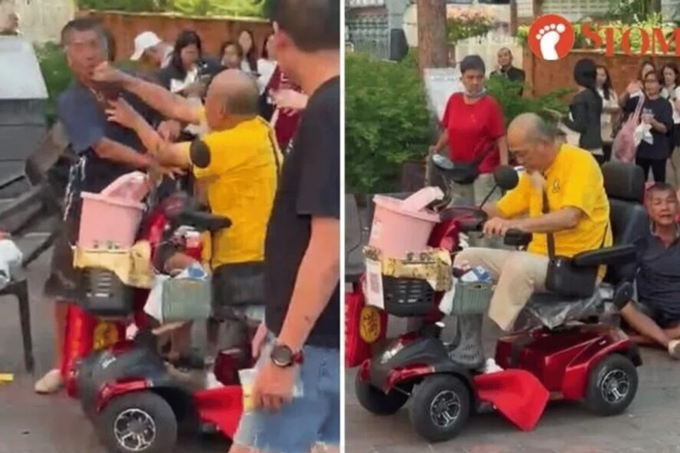 டோனோவன் என்பவர், ஸ்டாம்ப் தளத்தில் பகிர்ந்த அந்தக் காணொளியில், நடமாட்டச் சாதனத்தில் அமர்ந்திருந்த முதியவர் ஒருவர் மற்றவரின் முகத்தில் குத்தியதும் குத்தப்பட்டவர் தரையில் விழுந்ததும் தெரிகிறது.