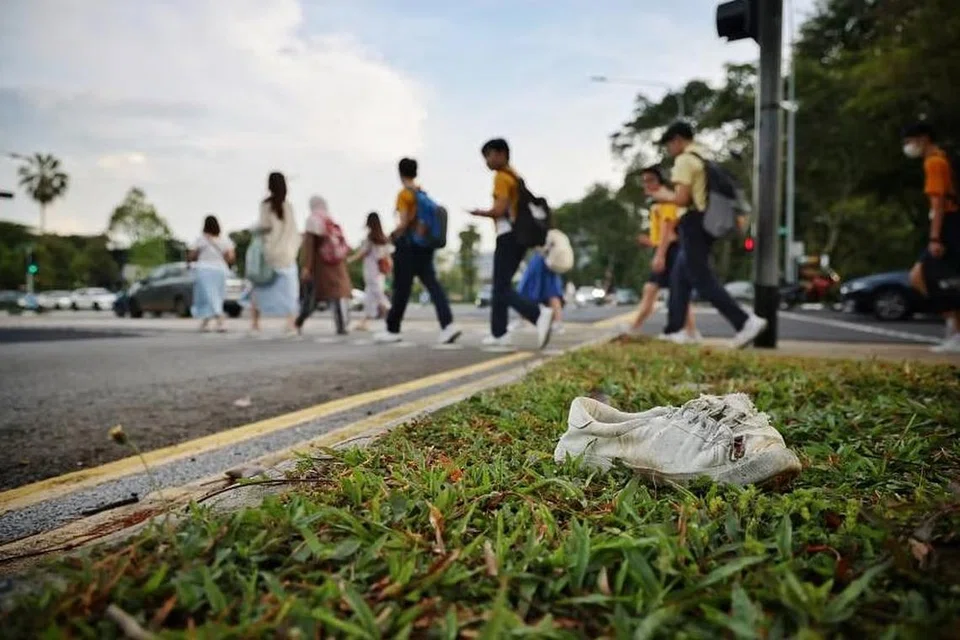 டோவர் ரோட்டுக்கும் நார்த் புவன விஸ்தா ரோட்டுக்கும் இடைப்பட்ட சாலைச் சந்திப்பில், விபத்து நடந்த இடத்தில் வெள்ளை நிறக் காலணி ஒன்று காணப்பட்டது. - படம்: ஸ்ட்ரெய்ட்ஸ் டைம்ஸ்