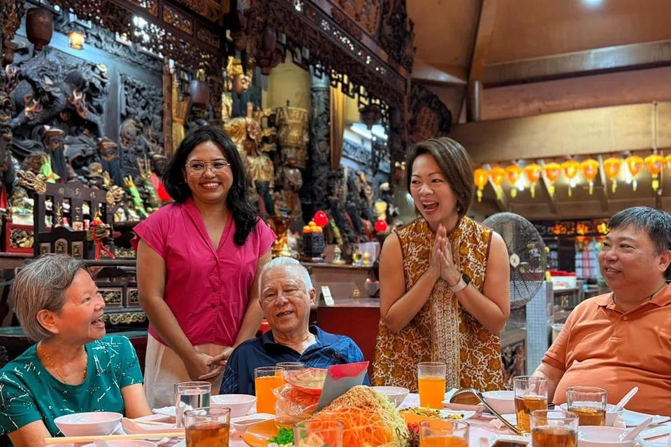 வெஸ்ட் கோஸ்ட் குழுத்தொகுதியில் சீனப் புத்தாண்டைக் கொண்டாடும் நிகழ்ச்சி ஒன்றில் எம்.பி. ஃபூ மீ ஹாருடன் திருவாட்டி நட்டஷா சோய் (இடப்புறம் நிற்பவர்) காணப்பட்டார். - படம்: ஃபூ மீ ஹார்