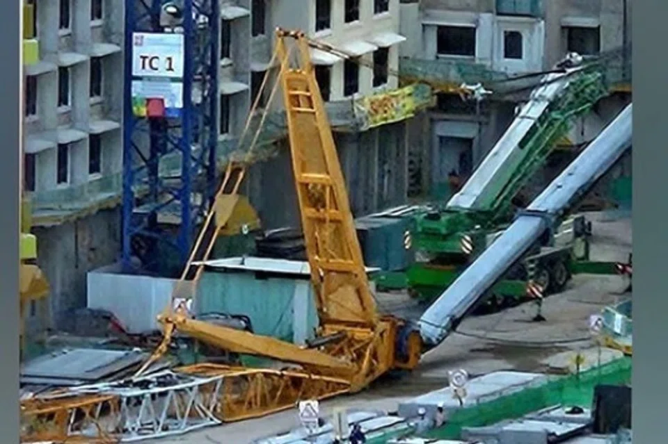 பணியிடத்தில் பயன்பாடு முடிவடைந்து அதன் பாகங்கள் கழற்றப்பட்டன. அவ்வாறு அகற்றப்படும் நிலையில் பாரந்தூக்கி கவிழ்ந்ததால் அதன் ஏற்றத்தைத் இறுக்கப் பிடித்திருந்த பாகம் விழுந்து கண்காணிப்புப் பணியில் இருந்த 37 வயது ஊழியர் ஒருவர் மீது பட்டு அவர் காயமடைந்தார்.