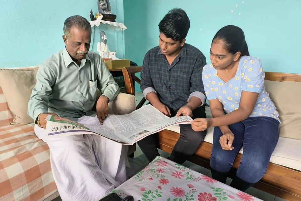 “எங்களுக்கு விருப்பமான அல்லது எங்கள் துறைகளுடன் தொடர்புடைய செய்திகளை வீட்டில் இருக்கும் பெரியவர்கள் செய்தித்தாளில் முதலில் படிக்க நேர்ந்தால் அது பற்றி எங்களிடம் கூறுவர்,” என்று திரு பரதன் கூறினார்.