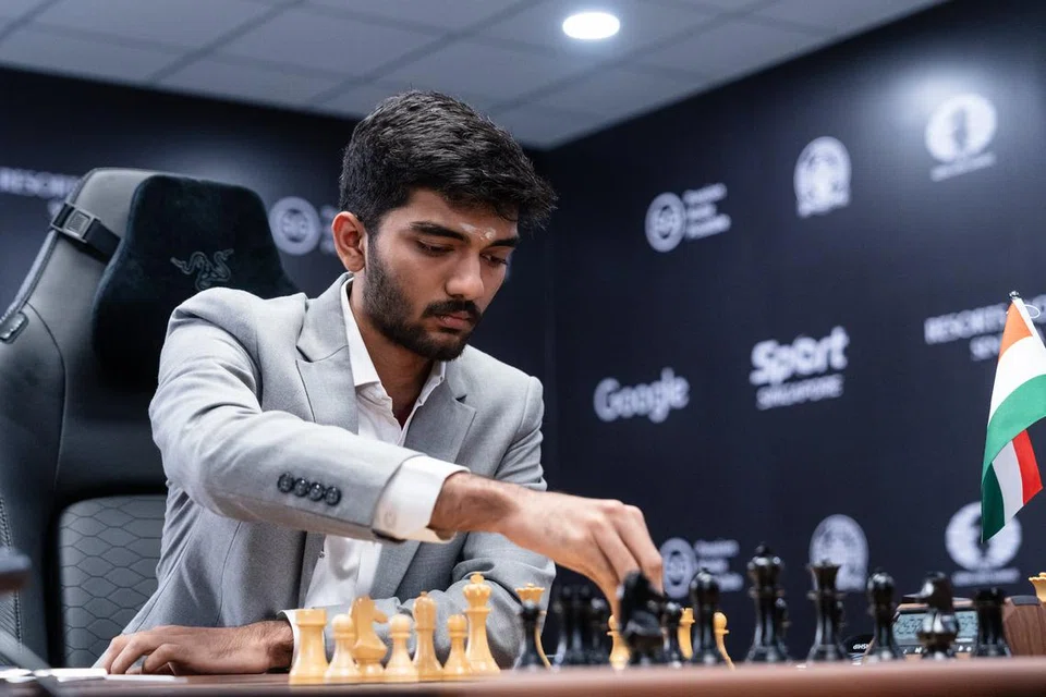 திங்கட்கிழமை (நவம்பர் 25) நடைபெற்ற சதுரங்க வெற்றியாளர் போட்டியின் முதல் சுற்றில் நடப்பு வெற்றியாளரான சீனாவின் டிங் லிரனுடன் மோதினார் டி. குகேஷ்.