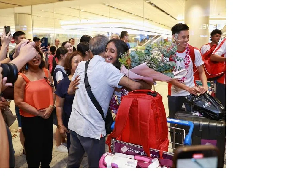ஆசிய விளையாட்டுப் போட்டிகளில் தங்கப் பதக்கம் வென்ற தங்கமகள் சாந்தியை வரவேற்க சாங்கி விமான நிலையத்தில் வியாழக்கிழமையன்று கிட்டத்தட்ட 70 பேர் கூடினர்