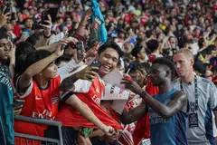 ஆட்டம் தொடங்குவதற்கு முன்பு சிங்கப்பூர் ரசிகர்களுக்கு உற்சாகம் தரும் வகையில் ஆர்சனல் அணிக்குப் புதிதாக ஒப்பந்தம் செய்யப்பட்ட விக்டர் யெக்கர்ஸ் (Viktor Gyokeres) விளையாட்டு அரங்கிற்கு வந்தார்.