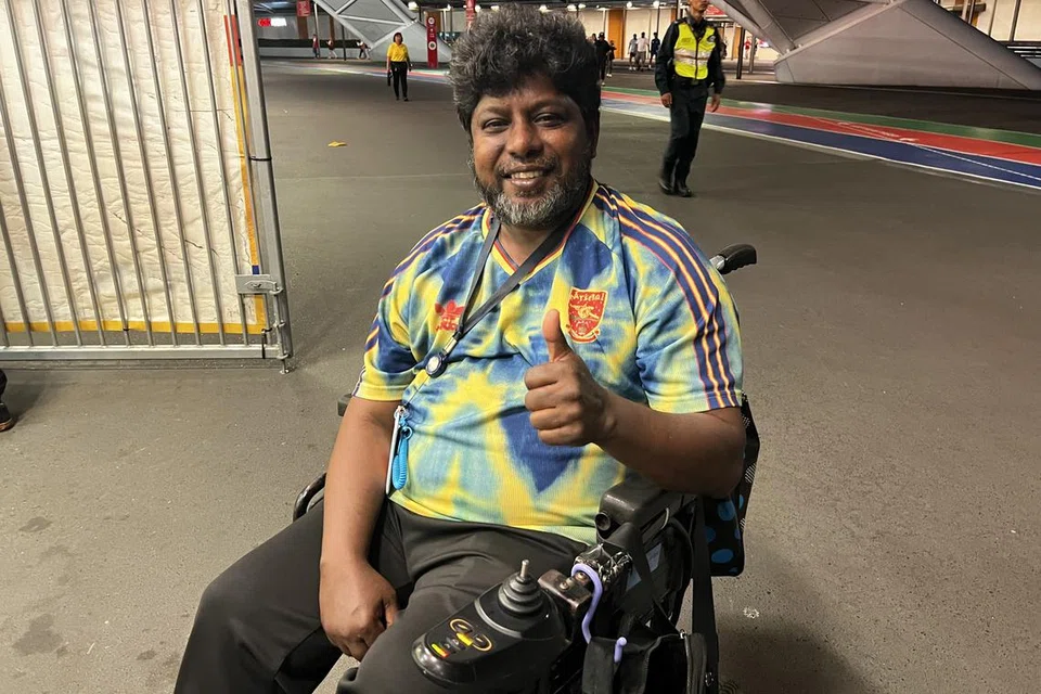 சக்கர நாற்காலியைப் பயன்படுத்தும் ஷாகுல் ஹமீது விளையாட்டைக் காண வந்திருந்தார். “நான் காற்பந்து ரசிகர். நேரில் காணும் வாய்ப்பைப் பெற்றதில் மகிழ்கிறேன்,” என்றார்.